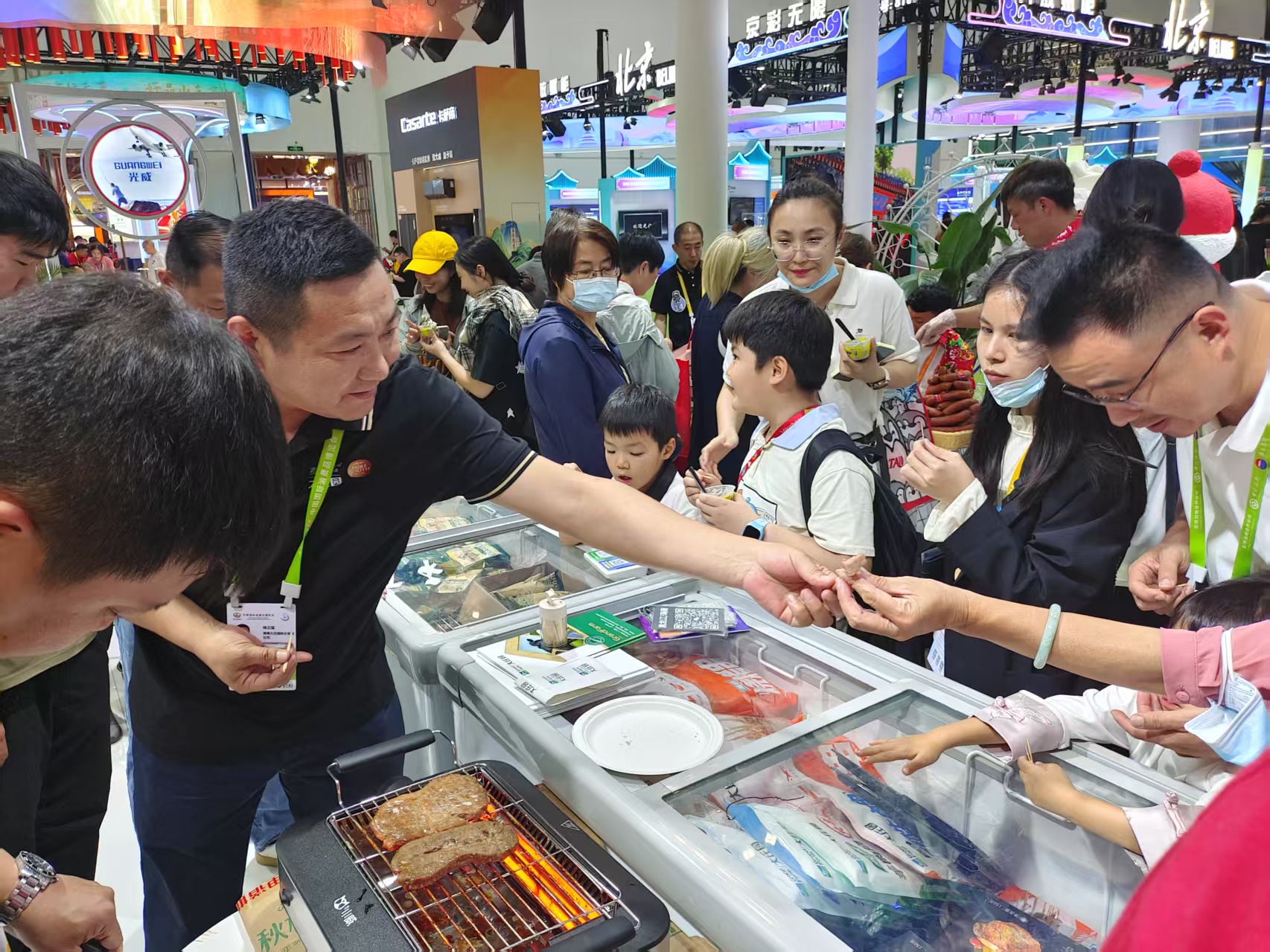 大莊園集團(tuán)攜火鍋、燒烤、西餐等系列產(chǎn)品驚艷亮相,展位前吸引了眾多國內(nèi)外客商和消費(fèi)者,美味誘人的牛羊好肉讓觀眾大飽口福。