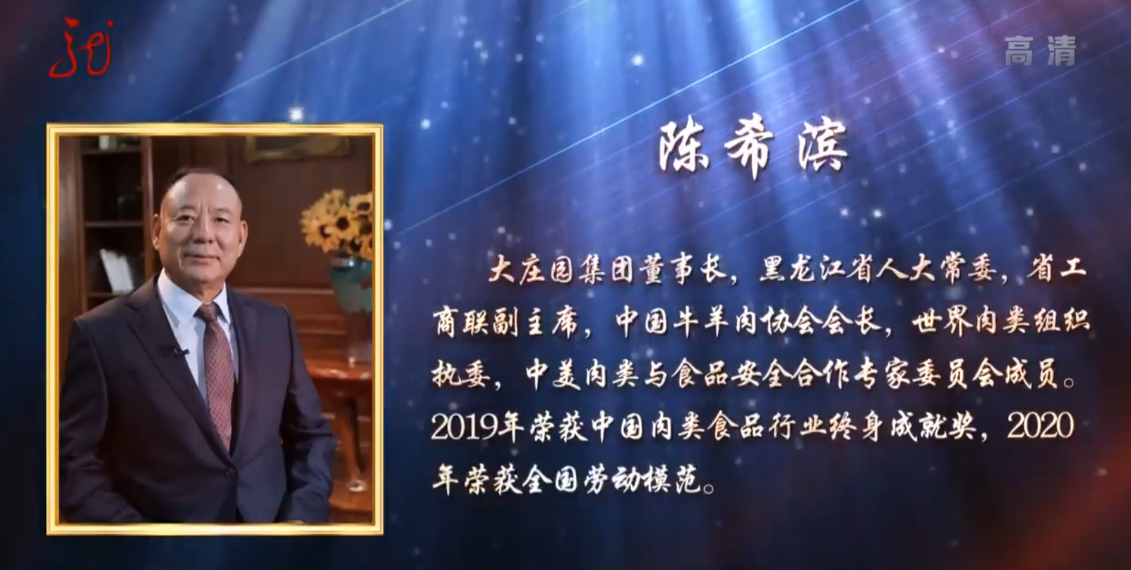 2019年9月24日,大莊園集團董事長陳希濱先生榮膺中國肉類食品行業最高個人獎項:“終身成就獎”,成為中國牛羊肉行業獲此獎項的第一人。