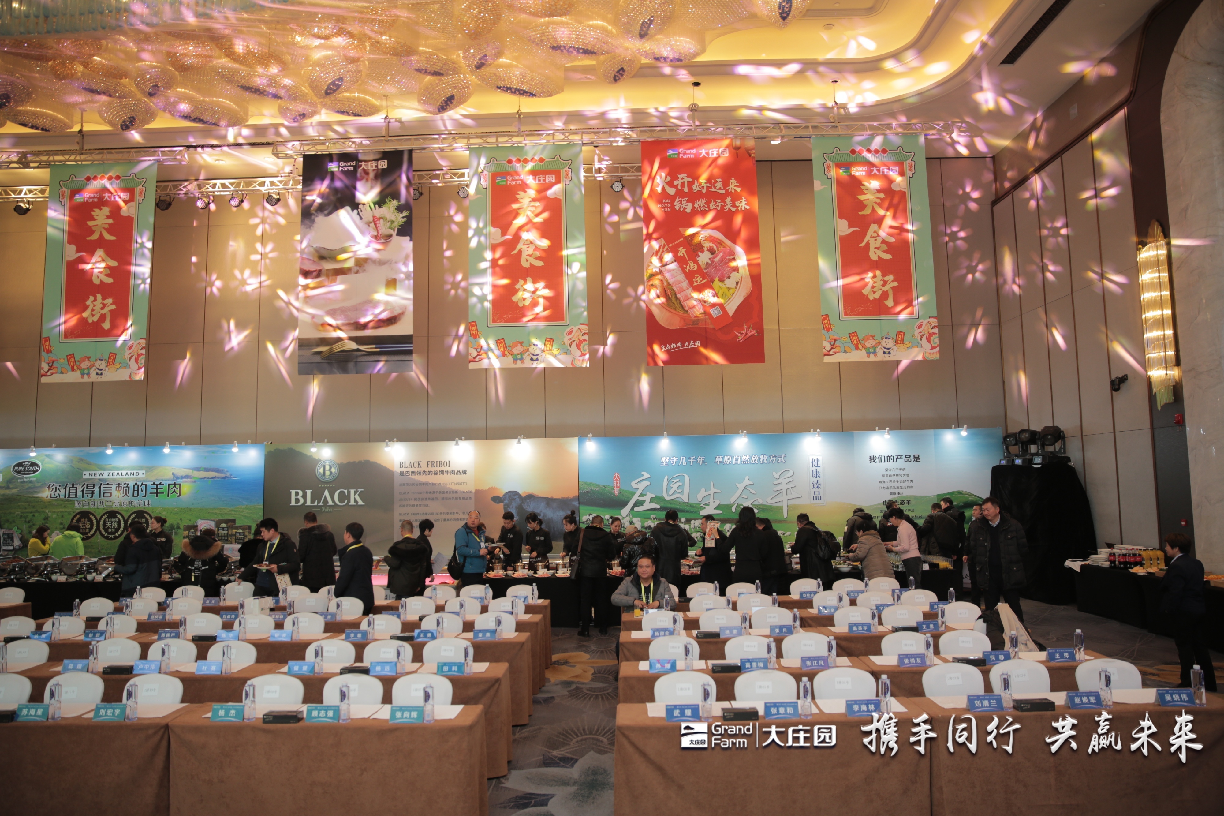 來自內蒙古錫林郭勒的草原稀珍——烏珠穆沁羊,新西蘭南阿爾卑斯山孕育的雪山羔羊,來自南美洲巴西的純血谷飼安格斯牛,分別由大莊園羊產品事業部總經理李萬利先生、大莊園親密合作伙伴世界最大羊肉出口企業新西蘭阿蘭茨集團的生產品控負責人David Kean先生和大莊園牛產品事業部總經理孫博先生帶到了客戶面前……“整合全球優質生態牛羊肉資源”,大莊園一直在路上。